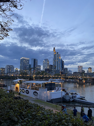 Read moreDie Location auf dem Wasser ist toll und der Blick auf die Skyline wirklich schön. Preise wie zu erwarten eher hoch. Was man in Kauf nimmt, aber dennoch waren wir enttäuscht von der so gehypten Rimini Pizza. Die war gut und in Ordnung, aber wirklich nicht mehr. Kriegt man inzwischen in ganz vielen Läden besser und vor allem mit mehr Liebe serviert. Denn der Service war leider absolut unterirdisch. Wir haben mit Freunden direkt hintereinander bestellt. Während wir unser Essen relativ zügig bekommen haben, kam das Essen von unseren Freunden einfach nicht. Nachdem wir gesehen haben, dass irgendwann alle Tische, die nach uns kamen, ihr Essen hatten, haben wir freundlich nachgefragt und erhielten nur eine unfreundliche Antwort, das sei halt so, es ginge nicht nach der Bestell-Reihenfolge. Hä? Wonach denn dann? Dass mal ein Tisch nach uns schon vor uns die Pizza bekommt, fein - aber 4-5 Tische? Wir haben nicht mal eine Entschuldigung bekommen und nachdem wir angemerkt haben, dass das nicht so schön ist, weil wir als Gruppe dadurch getrennt essen müssen, hat man die beiden fehlenden Pizzen einfach auf den Tisch gepfeffert, der eine Teller stand dabei nicht mal richtig auf dem Tisch und wäre fast runtergefallen. Absolutes No Go. Fehler können passieren, aber über diese Reaktion waren wir wirklich schockiert. Wenn man mit Beschwerden (und wir haben es wirklich freundlich angemerkt) so umgeht, hat man seinen Job in der Gastro leider nicht verstanden. Wir kommen definitiv nicht wieder. Dafür gibt es zu viel andere Gastronomie in Frankfurt, die das...