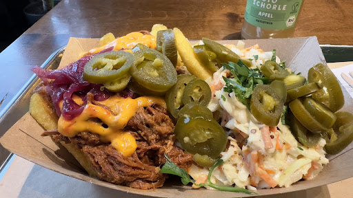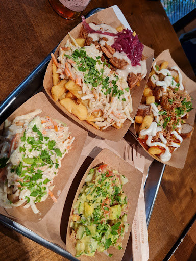 Read moreA tasty place to eat for any potatoe fry lovers. We had the "BBQ Pulled Pork Poutine", "Currywurst Special", "Avocado Tomato Salad" and the "Coleslaw Salad". You can decide between normal fries, garlic fries and sweet potatoe fries. I recommend the garlic ones if you are also a fan of garlic. The fries were delicious not too hard nor too soggy and the salad was refreshing to eat in between.