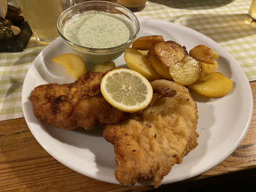 I ordered the Frankfurter Schnitzel with green sauce and I was not disappointed. The portion was substantial and the crumb was brown and crispy.