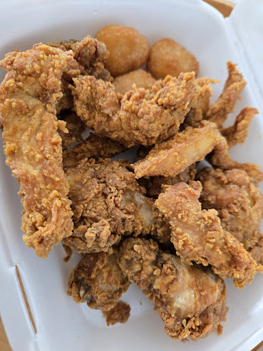 we were a couple with a 5 years old chicken lover!! we ordered 5 pieces fried chicken, 1 deal of the day which contains 1 special burger, pommes, 4 hot wings n 1 drink, 1 Kraut salad and ended the meal with 1 piece of chocolate cake (more like a fudgy brownie) it was so good that we parcelled one more. the fried chicken was pipping hot. they sprinkled some masala over the chicken and it was good. not very spicy not very bland, just the way fried chicken should be. the portion size were huge. we had to parcel 2 big size pieces of chicken and half of the burger. though we were very hungry we couldn't finish it. pommes were love. people who said chicken was oily, should consider that it is fried chicken not baked chicken. i loved every bit of it. fresh, crispy, totally worth it!!