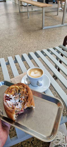 Der Workflow ist katastrophal unterirdisch. Einer der Bestellungen entgegen nimmt und "EINER" der "Kaffeespezialitäten" zubereitet und das im Schneckentempo. Die haben eine 10.000+€ Kaffeemaschine dort stehen mit drei Brühgruppen und zwei Dampflanzen. Wieso das volle Potenzial ausschöpfen, wenn man auch ein Minimum an Leistung bringen kann!? Der/Die/Das feine/r/s Herr/Frau/Einhorn/Fuchs was auch immer die Maschine operiert und eine exponenziel steigenge Zahl an Besuchern die Kaffee wollen gehen hier keine Symbiose ein. Im Gegenteil das hoffungslos überforderte Wesen kann nur einen Espresso machen und nur Milch für einen Cappuccino schäumen, anstatt wie vorgesehen, bei Bedarf, DREI!!!! Ich weiß auch nicht, was ihr unter einem Flat White versteht, aber das Rezept findet sich bestimmt irgendwo.... Kleiner Tipp: Doppelter Ristretto und Milch feinporiger schäumen ;) und nicht einfach einen kleinen Cappuccino als Flat White zu übertreuten Preisen veräußern. Etikettenschwindel oder ungeschultes Personal? Vielleicht beides?