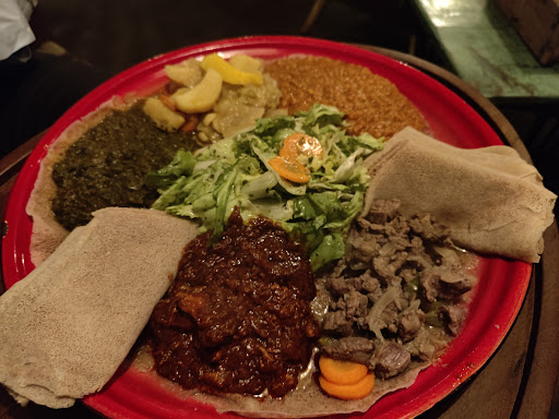 The food is delicious and bursting with flavor, offering a true taste of African cuisine. The menu features a huge assortment of vegetarian options, ensuring that everyone can find something to enjoy. The dishes are served on big plates designed for sharing, which adds a communal and friendly vibe to the meal.