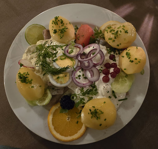 The experience we had at Kneipchen was truly exceptional. I had the chicken stuffed with pears, cheese, and ham. It was prepared perfectly and served with a side of wonderful potatoes. My wife had the veal with a brown gravy and mushrooms. I had a bite and it was tender and perfectly prepared.
