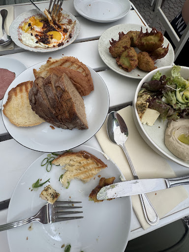 Went here for the brunch on a Sunday morning. Great atmosphere in a backyard, open kitchen, self service station for tea/coffee, friendly service. At the end of our brunch though it felt to me like we paid 100€ for bread and butter.