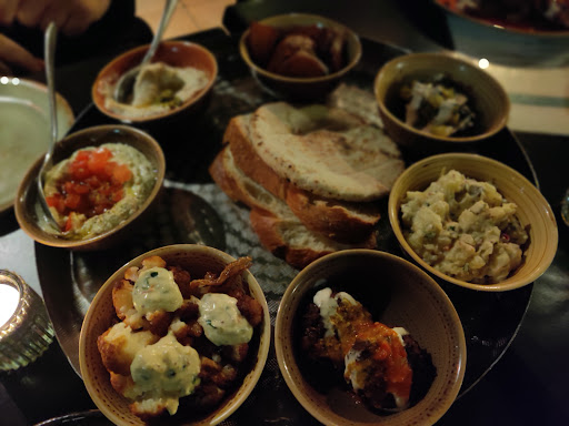 Read moreThe way it should be! So soll das sein! My wife and I have eaten a plant-based diet for about 8 years now, and we were very excited to be introduced to Kuli Alma last night by friends (non-vegan) who had also never been there. All four of us thoroughly enjoyed everything we ate. We shared the Vorspeise Platte and the Hauptspeise Platte. Everything from the Labneh, Hummus, and Falafel, right through to the Austernpilze, Kebab, and Scharfe Chraime was delicious. For us it's the way people should get exposed to a plant-based (vegan) kitchen. The vast majority of what we had was just dishes that happened to be traditional foods that are made from plants rather than using "fake meat" substitutes. Some did use Seitan, but the quality was also so good that it was also delicious. We would highly recommend heading over to Kuli Alma for delicious food and wine, as well as wonderful ambiance and...