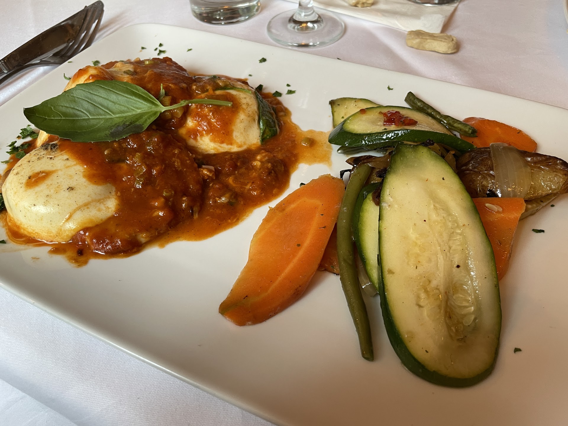 We visited this place with my wife today. I am sorry but I was really sad and I left not happy. Place outside not so clean for a restaurant. Table outside quite dusty and nobody clean it. After we order a bruschetta and a vitello tonato (wich did not came cold) there was completely nothing at the table. Appetizers came (after 20-25 minutes), and we waited another 10 minutes for small plates to come to serve our food. The vitello stand out of the fridge fol long and it was not ala minute prepaired. We had bread at the beginning (3 really small pieces) and the napkin wich the bread and the dipp was inside was 1000% used several times and not clean. Nobody came to ask if everything was okay in hall time we stayed at the restaurant. My wife order a chicken with mushrooms wich the chicken did not weight not more than 120-140 grams, and the pasta was full of cream. Not tasty at all and really less mushrooms. Now is coming the best part. I order veal scalopinia in lemon sauce for 18.90€. I asked the waiter with what is this dish combined and he told me with baby potatoes and vegetables. Another (baby) portion with the veal smal steaks not to weight more than 140-150 grams, the sauce was extremely bitter with lemon slices inside and lemon pieces, was only a half baby potato and not seasoned vegetables, salt and pepper nowhere and I must say that both main courses came out not really hot. Cold appetizer came in room temperature and hot main courses served not more than warm.