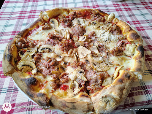 MARIO & LINO’S “PIZZA FERRARI" MASTERPIECE FEATURES: 2 LUSTFUL LAYERS OF MOZZARELLA; 2 PORTIONS OF SALSICCIA FRESCA; AND 2 PORTIONS OF MUSHROOMS ~THE VERY BEST PIZZA PIE ON THE PLANET!