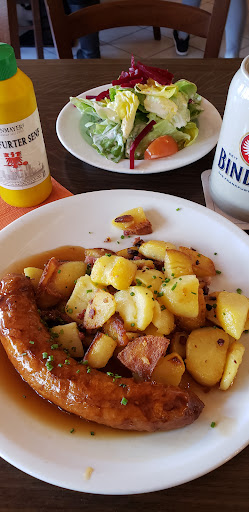 Der Service eher rauh, aber flott. Biere von Binding (war mal Traditionsbrauerei in Frankfurt) aus der Flasche, Riesling ohne weitere Deklaration auf der Karte durchaus gefällig.