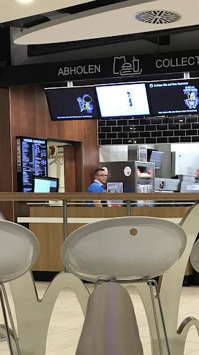 McCafe. While wandering around Frankfurt terminal I was looking for a cappuccino and pastry to finish up the day. Unfortunately there seems surprisingly few true coffee shops to be found which had sit down tables, non pushbutton coffee machines and a selection of pastries/cakes or muffins.