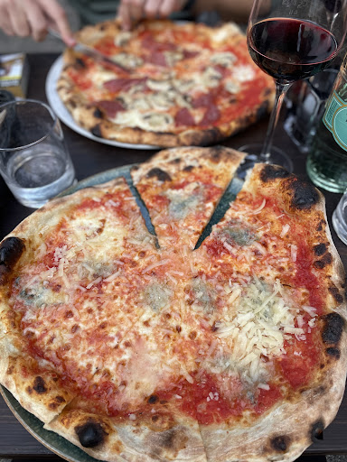 EN: The place is nice and you can enjoy some calm time with your friends sitting outside. I went there to try their pizza as it looked like the original one from Napoli (therefore, I thought, the name). Unfortunately it was a big disappointment. Pizza was not as soft as it is supposed to be (actually was like a hard biscuit, or a cracker), it lacked salt and buffalo mozzarella was really few (one quarter of the pizza, at least, was just tomato). I am sorry, but I will stick to the other famous napolitan pizzeria in Frankfurt. Can't judge the other meals, I only went there for pizza. PS: I come frome Naples