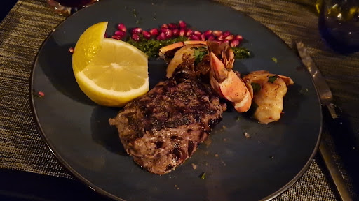 For the main dish, we had surf & turf and duet of sea bream and loup de mer. Meat was medium-rare, and I think they nailed it. The sea bream was a bit try, maybe because it was really thin. Otherwise, we liked the big lemon that came with the dishes. Often, you just get a tiny piece. And again, also here, the spices were on point.