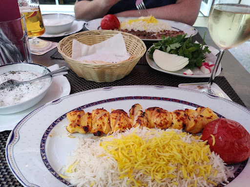 A party of 2, on a whim, for the slow hours of lunch on a warm and pleasant Saturday. Though a short walk from the hustle n' bustle of the central train station, the street felt secluded and the entrance to the restaurant fenced with colorful potted flowers, some tables and chairs in the shade of the canopy outside. We opted to sit outside. We were delighted to receive menus in both English and German, yet nevertheless needed to better understand the persian kitchen and ingredients. We had the luxury of the place to ourselves and the proprioter's ear. The restaurant is a fusion of grill and home-cooked persian specialeties, as well as an impressive variety of pure vegetarian meals. We shared everything, starters and entrees. The persian kitchen is full of flavors, yet "mindful" on the palate. We took our time enjoying every bite, the unpretentious easy going atmosphere and our own company. I am...
