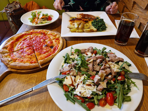 Read moreGestern nach einem ganzen Tagungstag auf der Suche nach einem netten Lokal um den Abend, mit Kollegen, ausklingen zu Klassen. Am Valentinstag ein sehr schweres Unterfangen ohne Reservierung. Bei der Pizzeria angerufen, die hatten alle einzige im Umkreis noch frei Plätze. Die Vorspeisen entsprachen nicht dem was man erwartet. Statt leckerem Bruschetta gab es überbackene Käsebrote. Das Carpaccio war Grenzwerten. Ich bewundere den Kollegen, der es trotzdem aß. Die Pizzen waren ok, doch zwei Hauptgerichte absolut ungenießbar. Eins ging nach einem Bissen zurück, wurde aus Kulanz dann auch nicht berechnet. Alles in allem ein sehr enttäuschender Abend. Bei der Bezahlung wurde verweigert einzel abzurechen und die Einzelbeträge mit Karte zu zahlen. Es hieß entweder der ganze Betrag mit Karte oder keiner Zahlt mit Karte. Für mein Empfinden kein bisschen Kundenorientierte. Einfach nicht...