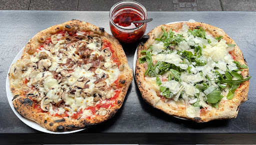 ° FLOUR: CAPUTO TYPE 00 ° TOMATO SAUCE: MUTTI SAN MARZANO ° MOZZARELLA: FIOR LATTE FROM L'ABBATE CHEESE OFFENBACH ° BUFFALO MOZZARELLA: ORIGINAL DOP CERTIFIED DIRECTLY FROM CAMPANIA, ITALIA