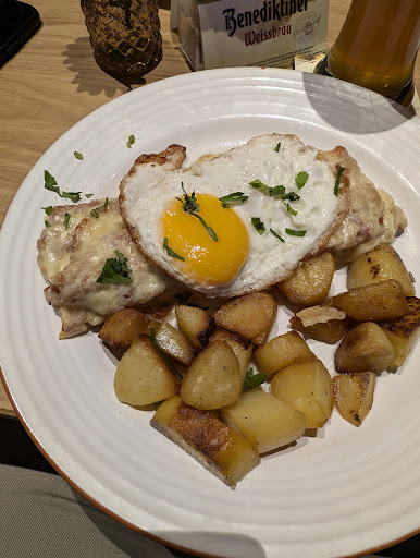We got a schweinehaxe and a schnitzel and it was really good. It is really making you full and I had zero cravings for more food..I was just stuffed. It tasted good aswell. The place looks nice and the menu tells a little bit about some history stuff, which is need. So I definitly can recommend if you saying...