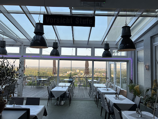 Read moreDas gute am Anfang, eine der besten Aussichten auf Frankfurt. Moderne Inneneinrichtung. Aber wir haben heute mit 18 Personen nicht den besten Tag des Restaurants erwischt. 5 mal musste Schweinefilet verbrannt und trocken zurückgehen. Die Ausrede war, man sei auf so viele Personen auf der Karte nicht vorbereitet. Es wurde Lugana als Flachenwein angeboten. Auf Nachfrage kam raus, dass eine Flasche 50euro kostet. Als Erklärung kam nur "es ist doch ein Lugana". Man sollte also bei Bestellung Preise nennen lassen. Nachdem der Essensfehler endlich eingesehen wurde, waren alle sehr bemüht, die Gäste wieder zufrieden zu stellen. Es wurden alle Speisen nachgeliefert, diesmal in gutem Zustand. Dafür gibt es statt 1 Stern 2 Sterne. Danke dafür. Die Aussicht war 5 Sterne, aber Küchenleistung muss besser getrackt werden und schnellere Ehrlichkeit im Service kann zu mehr Sterne führen. Die Portionen sind zu klein. Parkplätze kein Problem im Umfeld zu finden. Wir werden es mit Abstand...