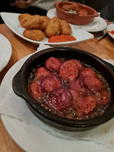 We only had tapas, which were okay but not particularly good. The battered calamari rings were not worth the price, what they lacked in flavour they made up for in chewiness. I had to drown them in aioli. The rest (including the aioli) was pretty average, on the oily side, and so unimpressive that I can't even recall in detail which tapas we had. Service was friendly, but completely out of its depth. We would have spent much more money there (on drinks, not on the food) if they hadn't made ordering so very difficult. It was virtually impossible to catch the waitresses' attention. The wait until we finally got our food was also very long. The ambience is as to be expected in a tapas bar. It's a small place, which gets full and cramped very quickly. Acoustics are terrible, so it gets very noisy equally quickly. We found it hard to converse because we could hardly hear each other over the din. Mind, this is not a trendy bar with a DJ, where you would expect to be shouting into your neighbour's ear, but a place you go for a nice social evening. Only that we found it very hard to be social. All in all, we will probably not be returning. For the 25€ I spent (for 3 tapas plates, not including drinks) I have had much better food in much...