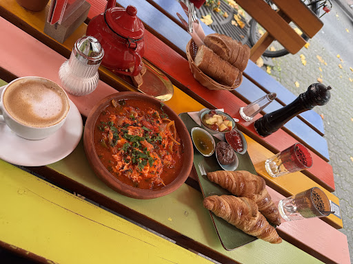 Read moreÜber ein Groupon-Angebot habe ich das Süden Café kennengelernt. Zum Glück. Derzeit in Idstein lebend, hätte ich das sonst nie gefunden. Und das wäre jammerschade gewesen. Diese Fahrt nach Frankfurt hat sich sehr gelohnt und wird wohl nicht die letzte zu diesem tollen Ziel gewesen sein. Der erste Eindruck ist schon etwas gewöhnungsbedürftig. Ein relativ kleiner Raum, eng gestellte Tische, aber doch irgendwie gemütlich. "Aufgehellt" wird dieser erste Eindruck aber sofort von der entzückend netten und total zugewandten orientalischen Servicekraft. Einfach toll und ans Herz gehend. Der absolute Höhepunkt folgte auf den Fuß: Ein persisches Frühstück für zwei. Eigentlich ein Brunch. Schön anzusehen und höchst beeindruckend. Und mit einer fast sensationell zu nennenden Preis-Leistungs-Relation versehen . Dabei war ein großer Teller mit Spiegeleiern in einer köstlichen roten Gewürz-und Gemüsesoße. Das war der israelische Teil des persischen Frühstücks, klärte uns die Serviererin auf. Der nächste, jetzt persische Höhepunkt war Rührei mit Datteln. Zum Hineinknien. Dann gab es noch Hummus, leckeren Schafskäse, Obst, Brot natürlich, dazu Kaffee oder Tee. Alles hat hier gepasst, alles war überragend köstlich. Wie eingangs gesagt: zum...