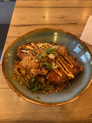 Read moreWir waren an einem Freitagabend im Restaurant. Der Laden ist ziemlich versteckt und der Standort ist nicht der schönste aber das Restaurant an sich ist sehr schön eingerichtet. Der Gastraum ist klein und eng, Vorallem wenn es voll ist. Die Kellnerin nimmt die Bestellung am Tisch an und das Essen wird auch am Tisch Servier aber man zahlt am Ende an der Theke. Wir hatten den Vorspeiseteller bestellt und die war wirklich sehr lecker. Es waren ingesamt vier Vorspeisen drauf und es wurden drei saucenschalen dazu serviert. Die Vorspeisen waren aber auch mit Saucen garniert, was super gepasst hat. Alles an der Vorspeise war lecker und noch heiß. Die Kellnerin war sehr freundlich und auch die Bestellung ging schnell. Die Gerichte sind Vegetarisch auf der Karte und können gegen Aufpreis mit dem Protein seiner Wahl angepasst werden. Was ich aber schade fand, war der Fakt, dass für ein Austausch einer Gemüsesorte oder sogar das WEGLASSEN von etwas mit 1€ berechnet wird. Ich hatte die 22 mit Hähnchen und wurde leider sehr enttäuscht. Der Reis war leider etwas zu verkocht und weich und das Hühnchen hat mir leider nicht geschmeckt. Die Sauce war hingegen in Ordnung aber nicht scharf, wie angegeben (mit 🌶️🌶️). Meine Begleitungen hatten alle ein Curry mit dem knusprigen Hühnchen, was ich eher empfehlen kann als das normale. Außerdem ist auf dem knusprigen Hühnchen auch die leckeren Saucen von der Vorspeise drauf. Aber es ist trotzdem etwas trocken/dunkel gewesen. Das Restaurant ist komplett Halal. Wir waren zu viert essen und leider war keiner von uns wirklich begeistert. Und hat einfach das gewisse etwas gefehlt und empfanden es auch nicht sehr authentisch thailändisch.
