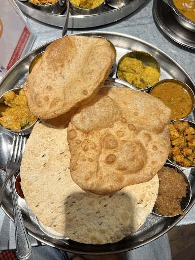 Read moreIt was my second time here, when i visited this place 1.5 years ago - it was really good. I meant the service, ambience and food! They were all equally good. But this time, they really disappointed me, first off - the guy that sat us at the table (Tall, bulky with beard who could speak german) he looked at us like worms, as if he didn't like to see brown skinned people in the restaurant (funnily enough he's an indian too) - he intially thought it was just me and he gestured like i was nothing. After we sat - it took nearly 20 plus minutes to take the order. In between, I had to go and ask whether someone would take the order but apparently the mafia divided the tables LOL! and only the guy who sat us down can take the order and he didn't even look remotely interested to do that. Finally, the mafia came to some negotiation and a girl with a tablet came over to take the order - ours was a simple two south indian special meals and a serve of sambar vadai. Actual service to get the food was much quicker - the food quality has degraded by a couple of knots from the last time. The pooris were thick and soaked in Oil, not sure if they re-fried them to make it hot. Rest of the menu items were very very spicy, so if you have a gentle stomach, please do watch out. Now comes to the ambience of the place, it looks like Hawker's corner - wasn't very clean. I suggest using the bathrooms before you eat so that you don't waste your money by going after you eat. The stench welcomes you from a distance. Saravana Bhavan was such a goto place for me back in India, franchises seem to struggle to keep up the standards.