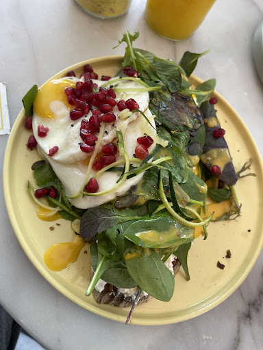 Read moreThis hidden gem of a place in Frankfurt Westend for breakfast and lunch is absolutely fabulous. We went for breakfast this morning. Man! We had to wait in line for at least 25 minutes before we were seated. The staff were very friendly especially our waiter Ale(Alessandro) is such a sweetheart. Once seated, he took our order very quickly and the food arrived very fast( we were told that they were short staffed!) We ordered the Sunny side up(two sunny side ups with bread, Avocado, salad and pomegranate) and Circle of Trust (Bagel, Avocados, Tomato and salad), Mimosa and Coffee Americano. The food was very delicious and absolutely out of the world. We finished the meal with a shot of ginger extract(compliments of Sunny side up! Thank you Ale for your wonderful hospitality!). My new go to place for breakfast in Frankfurt city. No wonder the reviews about this place are very good. If you are in the mood for a good breakfast and do not mind vegetarian/ vegan food, look no further, this is your go to...