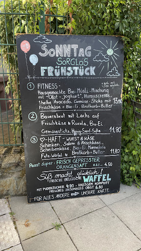 Wir haben kurzfristig vorher angerufen und erfragt, ob noch Platz für vier Personen ist. Der telefonische Kontakt war freundlich, die Mitarbeiterin hat in unserem Sinne mitgedacht und wir haben bei gutem Wetter einen schönen Tisch draußen unterm Schirm bekommen. Die Bestellung des Essens gestaltete sich dann etwas schwieriger. Die Auswahl der Frühstücke ist begrenzt (siehe Foto). Zwei von uns wollten gerne mehrere Frühstücke kombinieren. Dies war ansatzweise möglich, allerdings stellte sich schnell heraus, dass derartige Flexibilität nicht vorgesehen bzw. gewünscht ist vom Mitarbeiter (Chef?). Als Halb genervt kam ein Verweis auf noch viele zu erwartende Gäste (die, Anm. des Verfassers, ja aber noch gar nicht da waren und auch nicht kamen, obwohl wir dort über eine Stunde verbrachten). Irritierend fanden wir in dem Zusammenhang, dass dieselbe Bedienung (der Chef?) sich zwischenzeitlich selbst mit einem Snack für mindestens 15 min draußen für eine Pause auf die Fensterbank setzte. In dieser Zeit kamen mehrere Gäste neu hinzu, wurden aber z.T. nicht bedient, weil die zweite Bedienung nicht hinterher kam. Diese war sehr bemüht und freundlich.