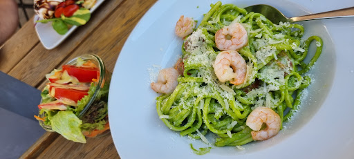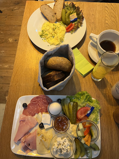Nun ich war einmal mit einem Bekannten, aussen sitzend, zum Kaffee eine weibliche Bedienung sehr freundlich. Dann hatte ich letzte Woche reserviert für Sonntag, dachte um 12:00 zum Mittagessen, aber das gibt's erst ab 14 Uhr. Nun wir wurden vom Inhaber bedient. Es dauerte eine Weile bis er kam und nach den Getränken fragte. Bei der Aufklärung, dass es brunch gibt und kein Mittag, konnte ich die Art des Inhabers nicht grad als freundlich bezeichnen, aussdem machte er den Eindruck :wenig belastbar meine Freunde bestellen Rührei und ich einen großen Salat. Als ich meiner Freundin sagte, ob mit Kräuter doch mitzuteilen, da musste ich mir vom Inhaber anhören, es würde ihn durcheinander bringen und die bei zwei Gerichten. Nun Gäste die viel später kamen, aber ihre Bestellung vor uns erhielten. Fast eine Stunde später kam dann unsere Bestellung. Ich muss sagen in meinem ganzen Leben hab ich noch nie so einen Salat bekommen. Nicht mal im tiefsten Bayern oder auf dem Land. Die Blätter nicht mundgerechte Stücke, dann Melonen brocken, dann Karotten Scheiben in rmeunterschiedliche Größen. Und für so etwas muss man über eine Stunde warten. Nun keine Zwiebeln, es gibt auch fruhlingszwiebeln, dafür Körner ohne Ende. Ach ja ich hatte mir eine heiße Schokolade bestellt und gefragt ob es sich um kochkakao handelt. Die Antwort war ja, aber es kam eine lauwarme Brühe und nicht mal das fertig pulver war aufgelöst. Kurzum jede landfrau kann das besser