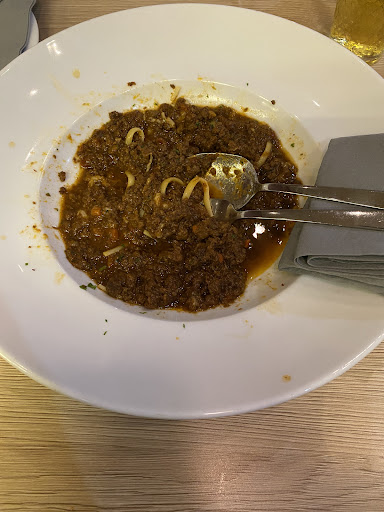 Das beigefügte Foto meiner Pasta Linguine „Bolognese“ mit frischem Parmesankäse spricht eigentlich für sich. Kurz um, es schmeckte wie aus der Tüte, war salzig & an den Nudeln blieb auch keine Soße hängen. (Ich würde behaupten, eine Bronzeform/ Presse haben diese Nudeln nie gesehen, da die Oberfläche total Glatt war.)