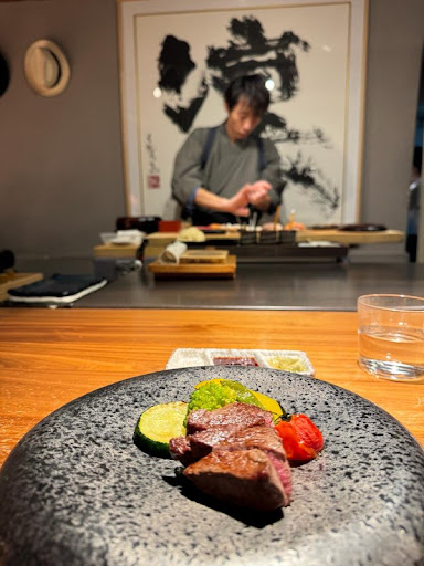 Next, I would like to describe the rating for each of the dishes from the OMAKASE tasting menu: Aperitif. Gorgeous presentation, the taste of the dishes is appropriate (perhaps you could think about replacing the lentils with something else, more vibrant in terms of flavor transitions). Salad. Once again, replace it. Soup. Think about a more exciting presentation. Regular chicken soup, but the ginger added interest in the flavor transitions. Sushi. The presentation of the wagyu sushi is charming and the smell of smoke is simply magical. The other sushi could be served on a high wooden stand since they are eaten with your hands. The sushi is not particularly tasty. Regular cod Wagyu steak is delicious at 10/10 Dry duck Regular mokrel, too much teriyaki sauce (very salty). Dessert. Great presentation, the matcha cake was very heavy and they didn't give us dessert selections.