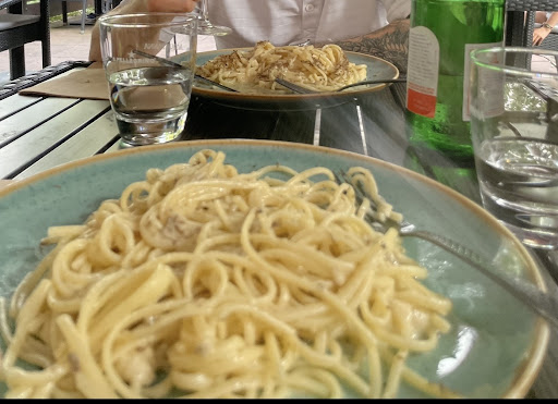 We had pasta auf dem Parmesan rad mit Truffel, the taste was just ok and the pasta too simple. It’s overpriced considering they don’t put any kind of meat, and even more if you know other trattorias like trattoria I siciliani where is cheaper, more delicous and with meat. The service was not the best, (I guess the girl was angry or something)… but we enjoyed the atmosphere in the terrace. In general, it’s tasty...