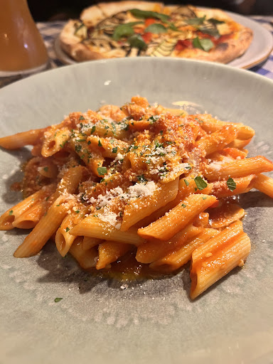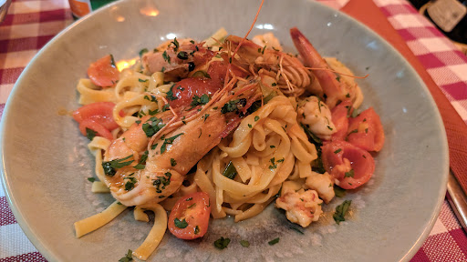 Food was very good. I loved the tagliatelle scampi that I received. However the plate of Carbonara was disappointing. Even I could tell it was not very good. This was bacon in there and definitely not pancetta. My Italian friends liked their plate except for the Carbonara which literary dismayed them. Also, they were not impressed with the look of the pizza on other tables.
