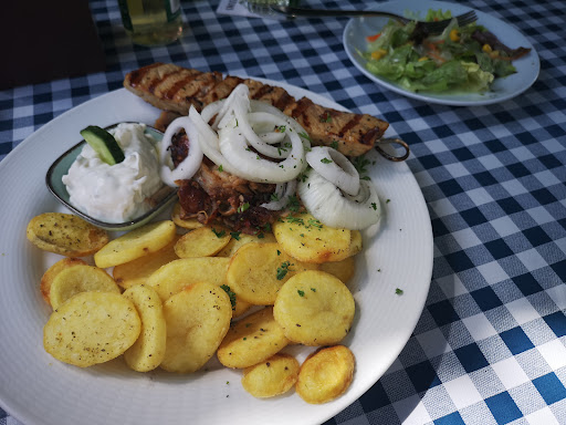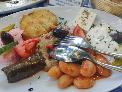 Read moreModern ausgedrückt würde man das Restaurant den "Neighborhood Griechen" nennen - ein griechisches Restaurant für den ganzen Tag: Mittagstisch, nachmittags Kaffee und Kuchen, abends bis 23:00 Uhr geöffnet. Die Speisekarte bietet die klassischen griechischen Vorspeisen und Gerichte, aber auch einige Spezialitäten, die der griechischen Hausmannskost angelehnt sind. Empfehlenswert sind auch die Lammgerichte, die als Kotelett, Spieß und geschmort aus dem Topf angeboten werden. Und wenn es einmal nicht griechisch sein soll: Ein Grundangebot an deutschen Gerichten gibt es ebenfalls... Das Angebot wird abgerundet von einer kleinen, aber feinen Auswahl an griechischen Weinen, von denen die meisten auch offen ausgeschenkt werden. Die Preise bewegen sich im Mittelfeld, in Relation zur Qualität der angebotenen Speisen ergibt sich aber immer noch ein hervorragendes Preis-Leistungsverhältnis. Die Vorspeisenplatten (15€ für eine Person, 27€ für zwei Personen) sind zwar nicht gerade günstig, reichen aber locker auch für zwei bzw. drei Personen. Sitzplätze werden im Innenraum, auf einer überdachten und halboffenen Terrasse sowie (im Sommer) im Garten rund um einen großen Baum angeboten. Gerade am Abend kann es auch unter der Woche recht voll werden; daher unbedingt reservieren, wenn man nicht warten möchte! Kurzes Fazit: Nettes, unkompliziertes griechisches Restaurant mit soliden Qualitäten und fairen Preisen. Gemütlicher...