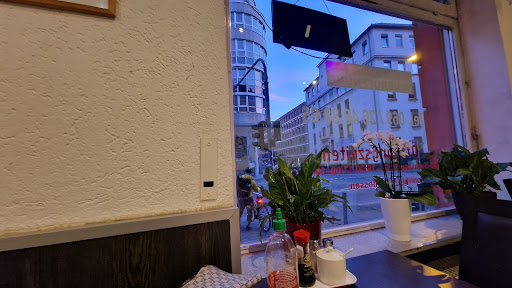 Read moreFaires Preis-Leistungs-Verhältnis auf der deutschen Mittagskarte. Bestellt man von der eigentlichen Karte wirkt das Essen nicht so europäisiert, ist allerdings auch teurer. Da man hier regelmäßig auch Chinesen essen sieht, kann die Küche also nicht schlecht sein. Für den europäischen Geschmack absolut ok. Das Essen auf der Mittagskarte ist nicht scharf, kann aber natürlich geschärft werden. Die eigentliche Karte hingegen hat durchaus chilireiches Essen dabei. Auf der Mittagskarte bewegt man sich bei 6-8 Euro für ein Gericht bzw. ein Gericht inkl. Suppe/Frühkingsrollen. Es gibt 2 größere Tische für Gruppen und sonst 4er Tische bzw. 2er Tische. Gegen 12 Uhr kann der Laden auch mal so voll sein, dass man keinen Platz kriegt. Reis/Nudeln mit gebackener Ente/gebackenem Hühnchen sind so das gängige Mittagsgericht. Aber es gibt auch Rinfleisch, Schweinefleisch und andere Gerichte - hier liegt man dann aber oft bei über 10 Euro... Die Parkplattsituation ist auf Grund von Anwohnerparkbereichen nicht so gut. Draußen sitzen...