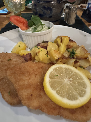Just wow, what a warm and welcoming place! The vegan schnitzel was exceptional and the apple wine was delicious. They have some vegetarian food. I eat primarily vegetarian and had that Schnitzel as well as the eggs with green sauce the other day, both were great! In general German cuisine is meat heavy and so is their menu.