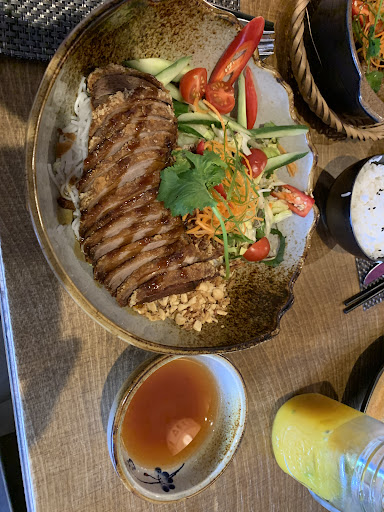 Read moreEssen war gut und Portionen der Hauptspeisen groß. Es gibt eine Vielzahl an vegetarischen Gerichten, Vorspeisen und Hauptspeisen mit Fleisch und ohne, Suppen und Salate sowie Nachtischvarianten. Außerdem gibt es ein Mittagsangebot von drei Gerichten. Wir waren am frühen Abend dort und hatten das Mittagsangebot nur auf einer Tafel gelesen. Allergene und Ernährungseinschränkungen müssten erfragt werden. Service war in Ordnung. Preise waren schon eher teurer. Strohhalme schienen aus Bambus zu sein, bei einem war kaum was rausgekommen an Getränk/Flüssigkeit, nur sehr langsam, obwohl nicht verstopft schien. Die selbstgemachten Limonaden waren gut, aber mit über 6 Euro je Limonade auch eher teurer. Boden in der Ecke am Eingang war sehr dreckig. Die Stühle, Sitzbänke sind eher hart. Toiletten sind vorhanden. Restaurant ist ebenerdig. Gut war auch, dass Besteck in Form von Löffeln, Gabeln, Messer und jeweils 1 Set Stäbchen zum essen bereit lag sowie eine Serviette ohne, dass nach Stäbchen oder eines der Besteckarten gefragt werden musste. Bezahlen kann man leider nur bar stand dran, was in der heutigen Zeit schade ist und wenn man mit mehreren Personen speist und mehr bezahlen muss od. nicht so viel Bargeld dabei hat oder auch aus Hygienegründen, auch nicht nur praktisch. Die Möglichkeit der EC-Kartenzahlung wäre super. Wir würden dort aber bestimmt schon wieder/nochmal...