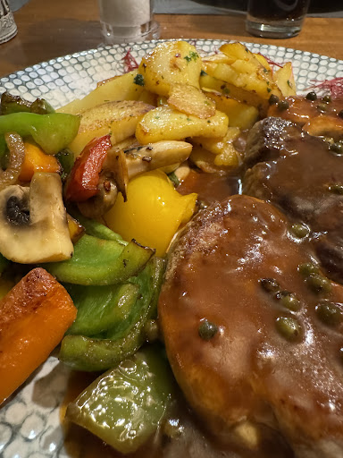 Wir waren hier schon ein paar mal zum Essen. Im Sommer kann man draußen sitzen, sitzt dann aber mitten in der Fußgängerzone. Drinnen ist es recht ansprechend gestaltet. Die Bedienung ist nett und auf Sonderwünsche wird gern eingegangen. Das Essen kommt recht schnell. Besonders gut ist, dass es ein Salatbuffet gibt. Vor allem mit mag-dies-und-das-nicht-Kindern (oder Erwachsene) ist das prima. Es gibt genügend Auswahl und das knoblauchdressing ist mein Favorit. Die Speisekarte bietet für jeden Geschmack genügend Auswahl. Die Portionen sind ordentlich und wenn was übrig bleibt wird einem angeboten es einzupacken. Ich hatte den Bretonischen Pfefferteller und ich war wirklich begeistert. Die Soße war richtig lecker, das Fleisch so wie es sein sollte und das Gemüse hatte noch Biss. Die Preise sind wirklich prima. Das Restaurant ist sehr beliebt und man sollte reservieren um sicher zu gehen, einen Platz zu erhalten. Wir waren spontan dort und nach kurzer Wartezeit haben wir doch noch einen Platz bekommen.