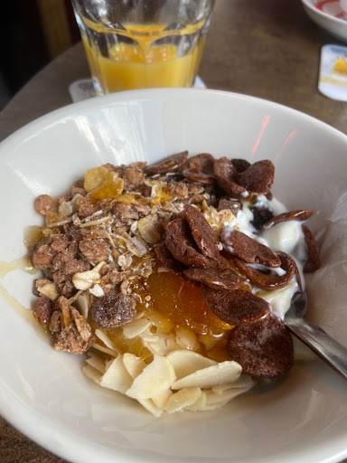 Read moreThe brunch has all the things you need. Outside the atmosphere is nice, located near the small river. But even a decent brunch become a little irksome when you have to pay extra for water(!) and coffee (4€). For a person that usually drink three cups to breakfast this isn't worth it. The plates are to small to get room with the things you want in the first round. Its a lot of people queing and staff running around with ordered coffee and juice (a glass of jiice are actually included). Sitting inside is therefore not nice at all, its loud and people everywhere. They get a 2 star only because of the food. With better logistics, self service of coffee, juice, water (of course included) etc this would become a really good place. Then the staff could go around, clean the tables and look...