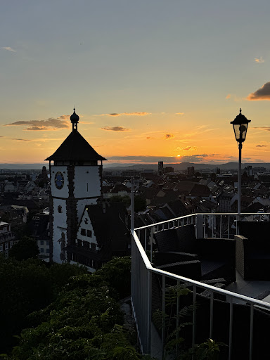 We sat outside with a direct view over Freiburg — just stunning (and yes we had a sun set). The restaurant is cozy without feeling cramped, so even when it’s full, the atmosphere stays relaxed and enjoyable above the city. Parking is easy in the nearby parking garage, just a 5-minute walk.