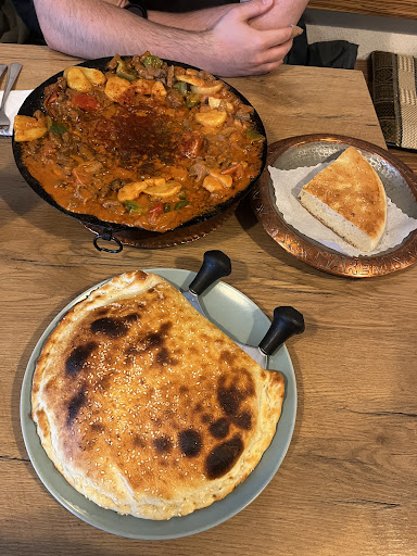 The meals were very nice and big portion sizes, especially the saç. Service is so so - we were sitting at the corner of the dining area. After choosing what we wanted to order, we were ignored for 10-15 minutes. When finally we managed to get the attention from the staff, we were met with a “yeah? Do you have questions?”. "Actually we wanted to order, but now you ask, we also have a question. What kind of mezes are included in the menu?" "All of them 🙄". We then waited an hour for the food. The atmosphere is very interesting - Islamic religious scriptures, religious music, but...