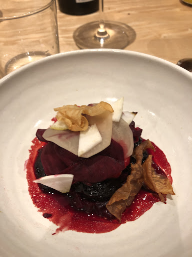 The menu offered an impressive selection of creative dishes that were visually and tastefully pleasing. Particularly noteworthy was the delicious tasting menu, which presented us with a variety of flavors and textures, accompanied by a perfectly paired wine selection. I highly recommend this place, as it not only offers excellent food but also an atmosphere that makes any occasion special.