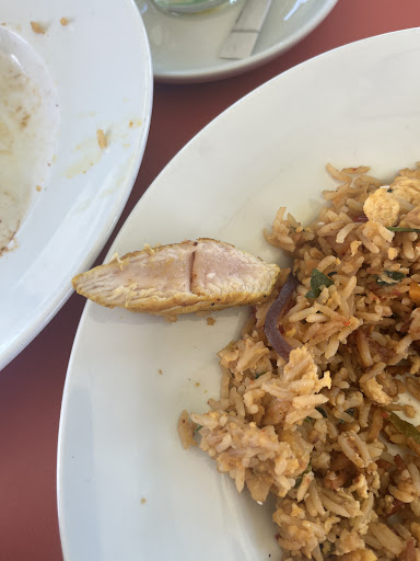 I order fried rice with chicken from the weekly menu and as I started eating my dish, which did not taste great and doused in soy sauce I found that one of the pieces to chicken breast was raw. I immediately notified the service staff who were very apologetic, they took my plate and brought me a new one, I did not want a new one, but whatever. I expected at least to not have to pay for the dish with raw chicken but I still did, as a reconciliation they offered me a free dessert or coffee. I think that this is unacceptable. And it’s a shame because I came here many times before with no issues.