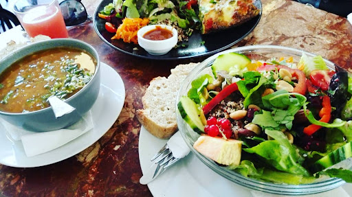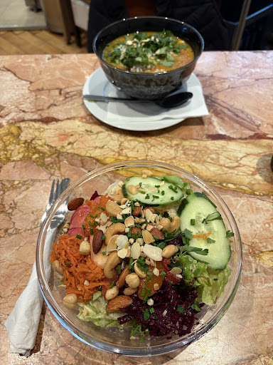 If You like vegetarian/vegan it's at least a choice, but not one we would really recommend. The tables are around an open and very noisy kitchen, so you are able to watch (and hear) everything happening there if you like (or not)... Unfortunately we did see (in our opinion) a little bit to much "unsanitary" behavior to feel completely happy with the food we just ordered. The "quinoa burger" was just mildly warm and without any bread or potatoes or... The cakes are served in pretty small sizes and were pretty expensive for not even being certified organic, too. The "normal" kitchen noise of e.g. the mixer got furthermore supported by a guy who throws every piece of silver ware with great enthusiasm into a box of other pieces. The last two tables at the wall beside the restroom-door should be avoided because the door is very close and opens in the direction of the tables which forces a lot of physical contact with the people using it and sends a strong smell in your direction every time it opens. Btw. even stated from some people otherwise, it's not certified...