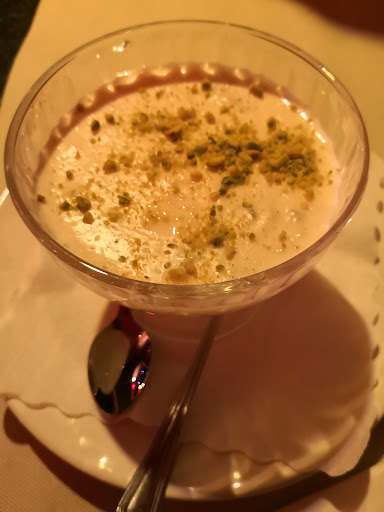 We ordered a Mantu & Ashak combo (afghan dumplings with minced meat or leek fillings), Kabuli Palau (rice with finely chopped carrots and raisins) with a side of lamb meat, onions, mushrooms and egg, a mixed pan of eggplant and tomato. As sides we had some fresh green salad and flat bread. For dessert we went with Firni, a creamy almond / milk pudding topped with pistachio.