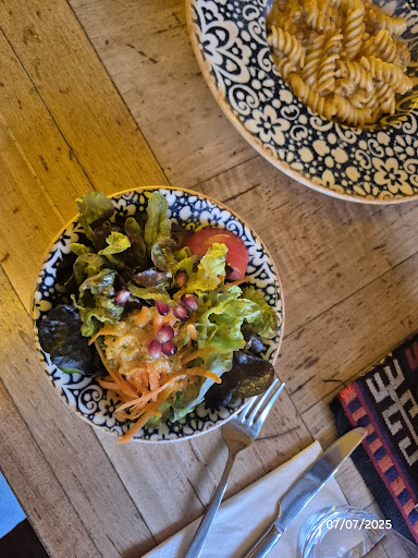 La carta es variada, con opciones interesantes que mezclan sabores clásicos y algunos más internacionales. Pedimos varios platos para compartir y probar un poco de todo. El Fusilli Nudeln estaba bien servido, con buena textura y una salsa sabrosa. El Grillteller fue uno de los platos más destacados: generoso, bien cocinado y con carnes de buena calidad. También pedimos Samosas, que sorprendieron gratamente, con un relleno especiado y crujiente por fuera.