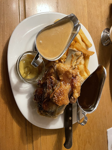 Read moreThis review is for tourists, like ourselves. The pork knuckle was not seasoned, not even a little bit. It for sure had the classic crispy skin, but it was not even salted, let alone being cooked in a beer. It was a plain piece of pork roasted in an oven with nothing at all. We had a fine time, and the sausages and ham were "fine," as in they were basic and cooked by someone who might identify as a chef, but our meal was absolutely not worth the money we paid versus going anywhere that is competent in cooking these meals. I would note that pork knuckle, or Schweinshaxe, is not a specialty of Freiburg, but really something to be enjoyed in the Frankfurt area. Overall I'm pretty sure that anyone who visits this place understands that it is a "tourist trap," but just don't expect the food to be...