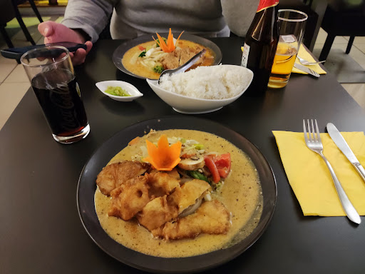 Read moreSehr beeindruckendes Thai-Restaurant. Sauberes und schönes Ambiente. Bestellt wurde: 1x Roter Curry mit Kokosmilch + Hühnerfilet im knusprigen Teigmantel. 1x Erdnuss-sosse mit Kokosmilch + Hühnerfilet im Knusprigen Teigmantel. 2x Frühlingsrollen vegetarisch. 2x Getränke Preis für alles zusammen: 30€