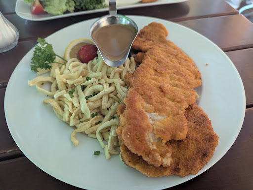Read moreIch bin in der Nähe des Restaurants aufgewachsen und kenne auch das vorherige Restaurant. Dort durfte ich als Kind selbst hinter die Theke und meinen Eltern Getränke zapfen... Ich erzähle das nur, um klar zu machen: Ich kenne das Restaurant und die Lokalität sehr lange und gut. Als ich noch hier in Freiburg lebte und arbeitete, traf ich mich fast jede Woche mit meinem Vater im Süden, und wir aßen immer das Gleiche: Schnitzel mit Pommes. Immer wenn ich aus meinem Studienort zurückkehrte, ging ich hier essen, mit meinem Vater, meiner Mutter, meiner Schwester, meinen Freunden und meiner Freundin. Das Schnitzel ist GROßARTIG, sehr lecker.