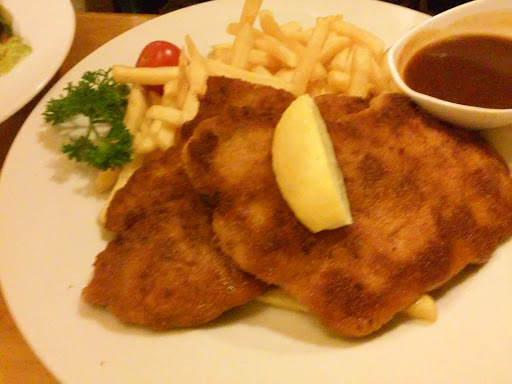 I called around 18:45 to try to book a table for 20:00, but they told me restaurant was full. They suggested that they will see what they can do when we arrive. Luckily it wasn’t too busy when we arrived. There were Interesting paintings on the wall and historical interior design, nice and relaxing atmosphere. The staffs were very friendly, attentive, and efficient. We were served very quickly. Thumbs up for the service team! The foods were very delicious and the amount were really generous ( two pieces of Schnitzel even it wasn’t mentioned...