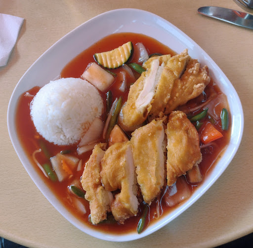 Kenne die Örtlichkeit seit vielen Jahren. Die Pächter_innen haben vor einiger Zeit leider gewechselt. Wir vermissen die von Herzen freundliche Frau, die uns über Jahre bedient hatte. Jetzt wird sich zwar um einen zuvorkommend Ton bemüht, jedoch lässt diese Freundlichkeit nach, wenn was nicht so ganz ins Konzept passt. Gefühlt eben nicht aufrichtig, eher geschäftstüchtig. Das fühlt man. Das Essen, um das es ja hauptsächlich geht :) hat sich nach einem anfänglichen Einbruch erholt. Wie üblich gleiche Zutaten für die Gerichte, nur Fleisch/Fisch/Tofu wechseln. Das kennt man ja, macht die Speisekarte scheinbar größer.... Preise sind 2023 den üblichen Erhöhungen angepasst. Damit muss man leben oder selber kochen. Die Menschen hier haben wohl immer noch genug Geld zur Verfügung, um das zu zahlen. Auf der Strecke bleiben wie immer die mit eh' geringem Budget. Eins noch, was wir sehr ungastlich finden ist das vorgeschützte 'Reservieren' von Tischen. Das ist untersten Niveau. Ich möchte dort Platz nehmen, wo es mir gefällt, zumal bei wirklich geringem Kundenaufkommen. Die Tische haben Glasoberfläche und sind leicht zu reinigen. Bei vollem Lokal kann man an einen Tisch gebeten, aber nicht gezwungen werden, Da endet die zur Schau gestellte Freundlichkeit schnell. Ein nogo... Wir wünschen uns mehr asiatische Küche für den bezahlbaren Mittagstisch in der Stadt, der sich auch vegetarisch besser aufstellt und konsequent auf Glutamat verzichtet, auf jeden Fall weniger Schabefleischspiesse.... Gott sei Dank haben wir diese 'Sorgen' und keinen Krieg hier.