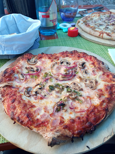 Ich habe einen kleinen Antipasti Teller gegessen. Dieser Bestand aus Oliven, gewürfelten Parmesan, Oliven, Salami und Garnelen und gefüllte kleine Kirschpaprika und es gab einen Brotkorb, Preis 18,-€ Der Teller bestand nur aus eingekauften Produkten, für mich fehlt da das Handwerk. Für so einen Antipasti Teller braucht man nicht essen gehen. Ich erwarte da schon selbstzubereitetest Grillgemüse etc. Die Pizza war sehr klein aber ok, geschmacklich sehr Fade, Preis 15,-€. Jemand der einigermaßen selber einen Pizzateig machen kann und sich eventuell noch einen Schamottestein zulegt, bekommt das selber hin. Die Weine waren von sehr guter Qualität und lecker.